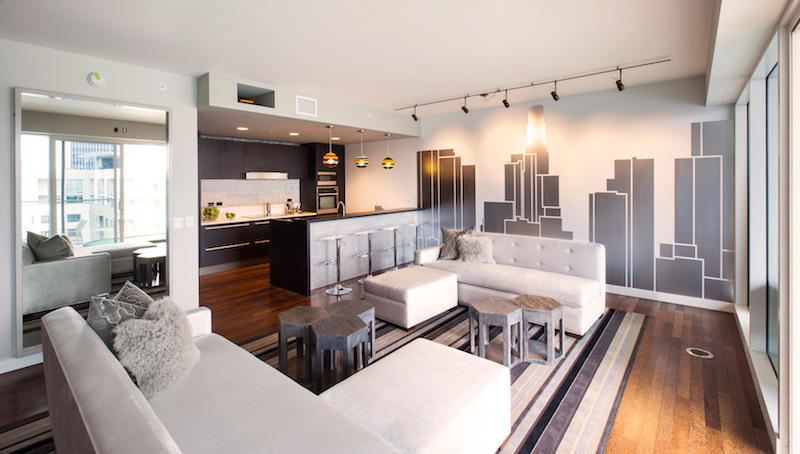 In addition to the pointers that Grubb gives for designing a unique space, Grubb also gave some tips and tricks for making an apartment look bigger when you’re staging it for potential renters. For instance, Grubb suggested using smaller furniture that won’t overwhelm the space, and having some