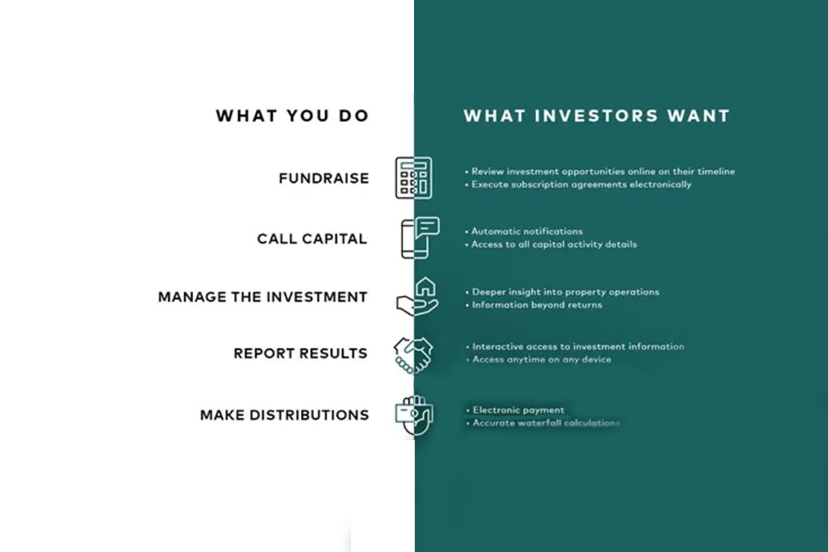 Manage the entire real estate investment lifecycle with a connected solution. Increase visibility from investor to asset operations.