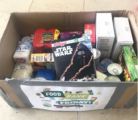 Each week, the team checks the website to see which items they need most, and staff donate whatever they can: tins of fish, veggies, fruit, pasta, rice, children’s cereal. It’s not just food though. Beneficiaries of the food bank also require toiletries, so the UK team helps with that too. At the end of the week the UK office has “Food Bank Friday” where the donation box is collected. Items are then packed into bundles and distributed.