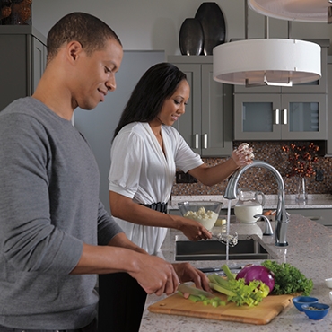 For kitchens and bathrooms, Delta Touch2O.xt Technology offers a range of operations. With the back of the hand, wrist, forearm or elbow, users can tap anywhere on the faucet to start or stop water flow. Some styles are equipped with true touch-free operation. Simply bring your hands within four inches of the sensor to activate water flow.