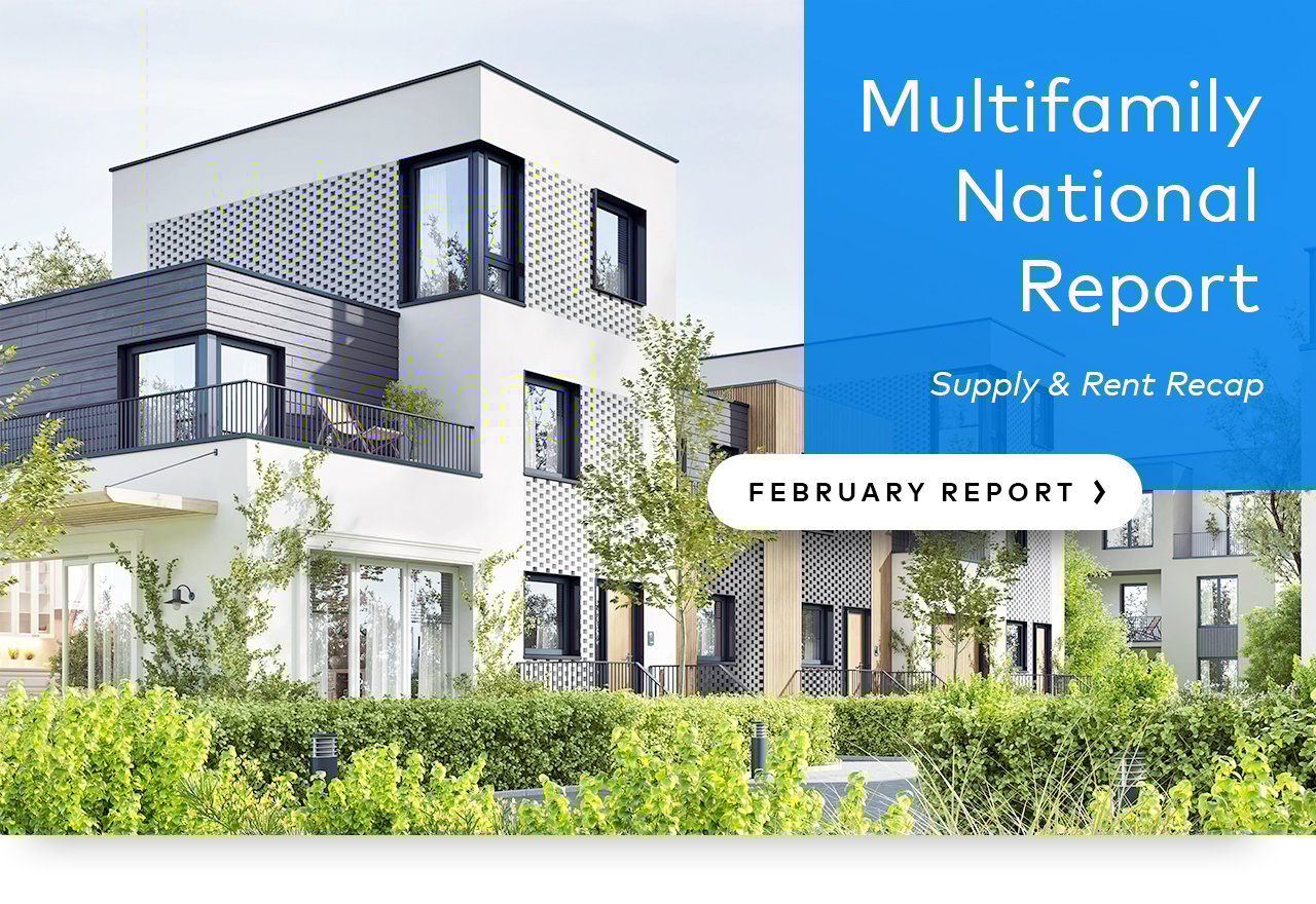 National asking rents posted their first increase in over seven months in February, according to the latest Yardi Matrix National Multifamily Report.