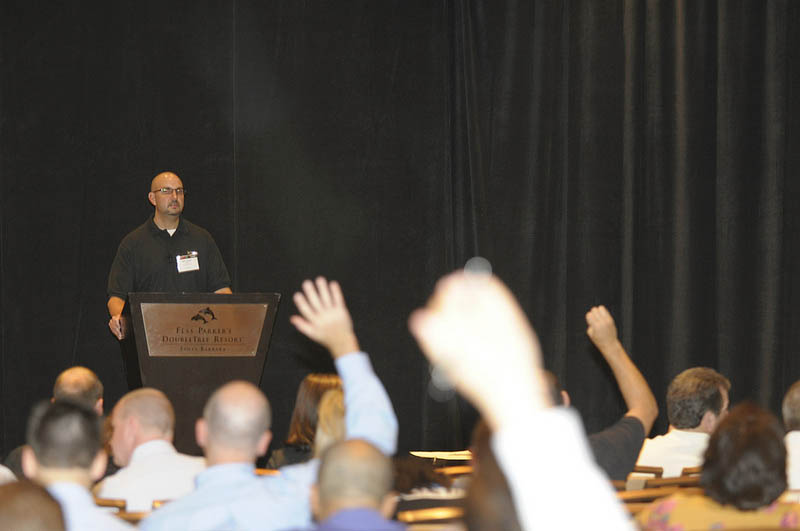 1 p.m. – Here’s a little mobile tech humor for you as we head out from lunch and back into our afternoon classes. Bob Haenel of Eugene Burger Management Corp. shared this joke: “I renamed my iPad the Titanic, so it’s syncing now.” Speaking of iPads, an informal survey during general session asked the audience how many attendees owned an iPad. Several hundred hands – about half of those in the audience – went up. It’s estimated that Apple could sell upwards of 65 million tablets this year. Despite increased competition from other tablet developers, iPads continue to dominate the market – they accounted for 68 percent of all tablets shipped to customers in second quarter 2012, the highest share in nearly two years.