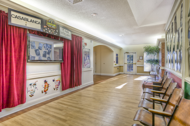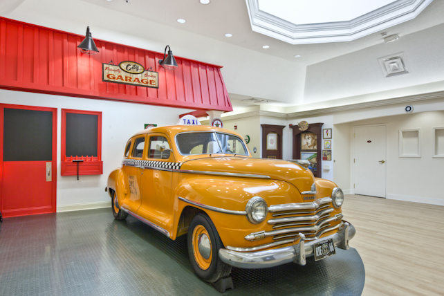 life skills shops in the building such as an antique store and a general store, an old-fashioned cinema, post office, barber shop, newsstand, book nook, vintage sporting goods store, flower shop, toy store, art center and a department store. We have a New York City taxicab from the 1940s in the middle of the community. For our residents, it’s an innovative concept that really helps. There’s nothing else like it.”