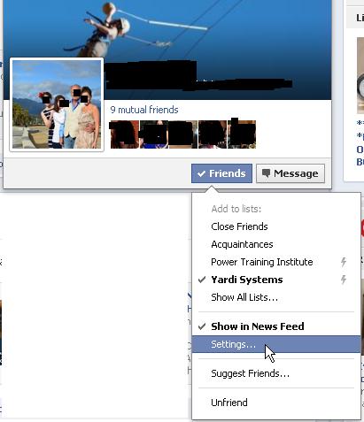 2. By hovering over your friend’s name, then their status, and selecting settings, you can choose what updates of theirs you see in your news feed (helpful for that friend who is always trying to get you to play Superball).